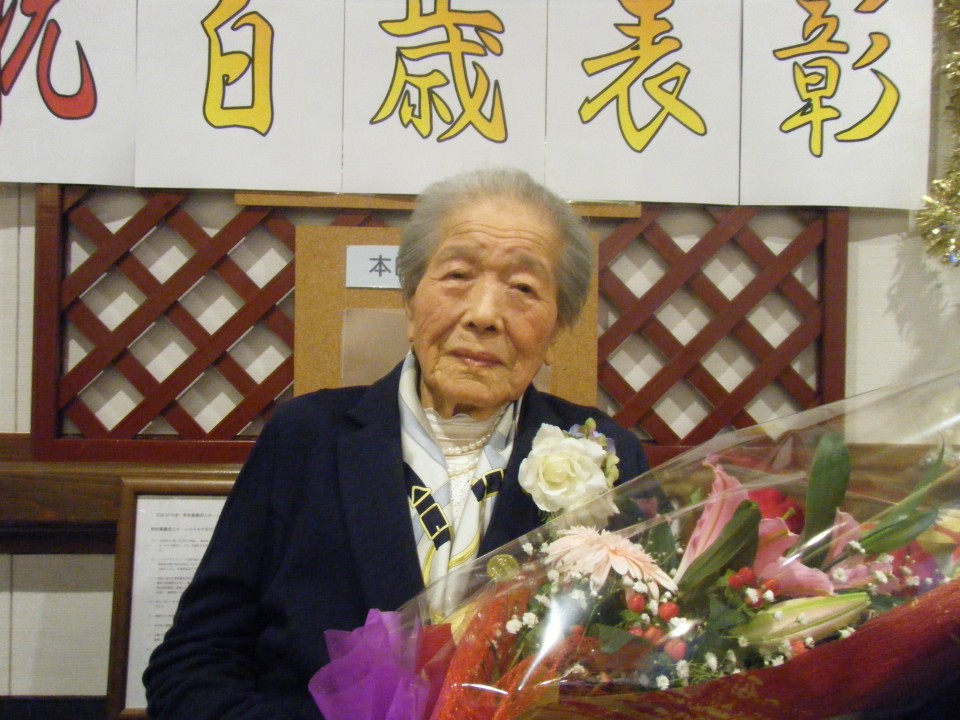 きくユニットの田上タツミ様が3月12日で満100歳を迎えられ、益城町より『百歳表彰』を受けられました。
