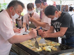 尾道てっぱん料理くらぶ様からは尾道お好み焼き、チームがんこ屋様より気仙沼フカヒレ雑炊、かじきの薫製、瀬戸田レモンスカッシュ&レモネードなど豪華な尾道&気仙沼グルメを振る舞って頂きました。