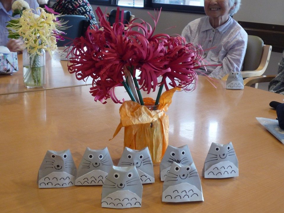 デイサービス・ココカラにてクラフト教室が開催されました。毎月1回先生方が来荘されいろんな作品を利用者様、職員一緒に楽しく作成しております。9月の作品は『となりのトトロ』です(*^_^*)