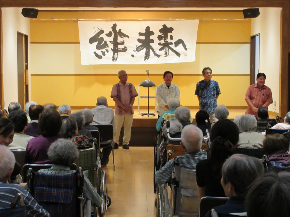 普段はなかなか聞くことのできない三線の音色に、時折手拍子をしながら皆さん耳を傾けておられました。