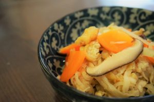 昼食の1品として、みなさんで切り干し大根の煮物を頂きました。
