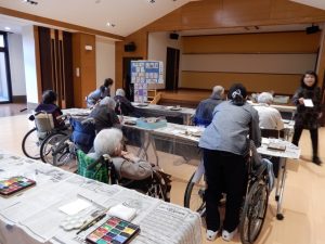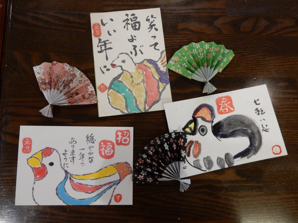 ご利用者の皆様は思い思いに今年の干支の酉を描かれたり、季節の花等を描かれ作品作りに熱心に取り組まれました。