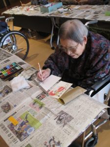 当施設では、講師の先生を招いて月に1度、絵手紙教室を行っております。