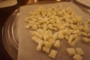 さて、まずは手指消毒をし、パンを小さく切っていきます