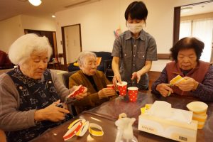 日頃から利用者様と関わる中で、「もうなんも出来ん」「前はもっとしゃんしゃんしよった」などの発言が聞かれることがあり、人から感謝される喜びやまだまだ必要とされているという事を再認識して頂きたいと考え企画しました!(^^)!
