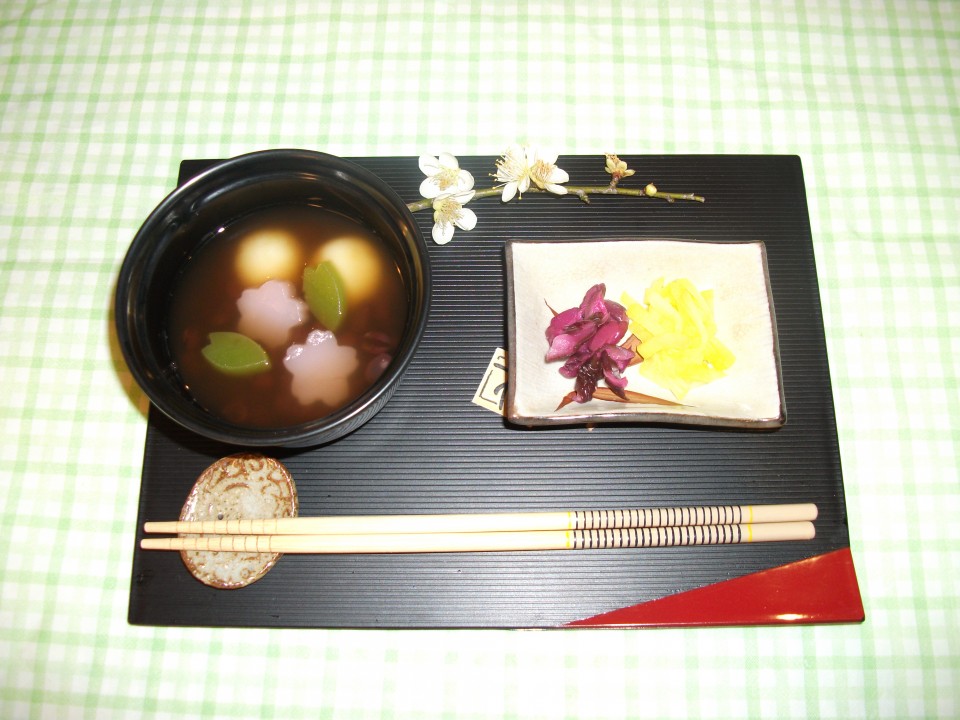 ゆでて、ぜんざいに入れて完成!