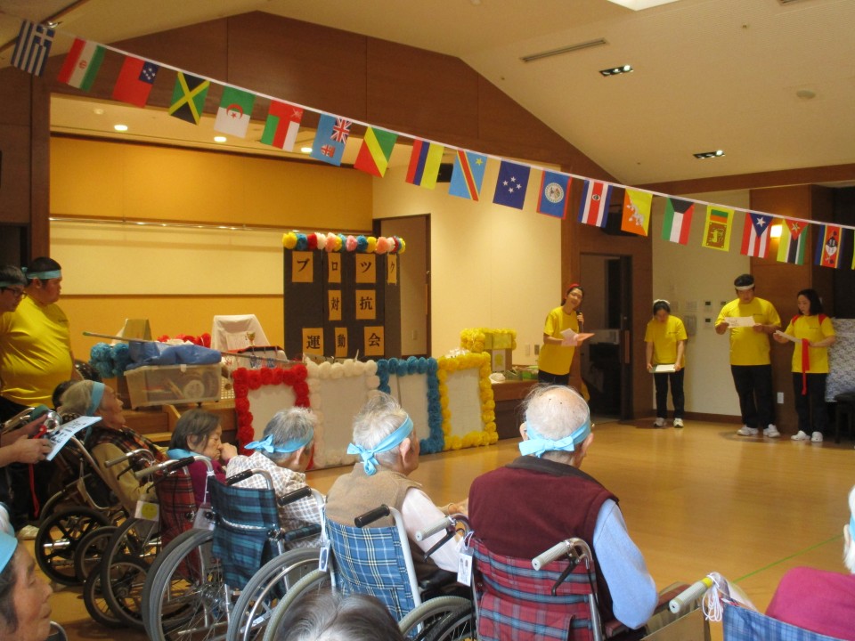 本日、14時より地域交流ホールにてブロック対抗運動会を開催しました。
