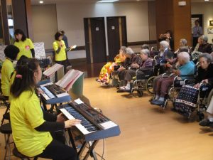 優しい音色と元気な笑顔に、ご利用者様はもちろん、当時避難されていた地域の方々、わたしたち職員も癒されました♪