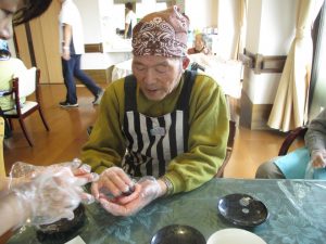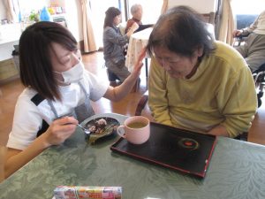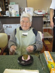最後はご自身で作った桜もちをみんなで 「いただきます」