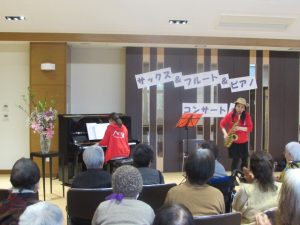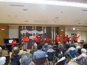 代表のmiwakoさんが「地震後7月以来皆さんに会いたいくて東京からひろやす荘に来ました!曲に合わせて歌ったり手拍子したり踊ったりしてください!」と挨拶されしっとりとした曲からコンサートが始まりました。