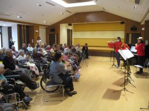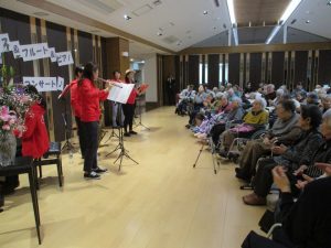次は皆さんが良く知っている曲『炭鉱節』『ふるさと』で一緒に口ずさんだり手拍子を叩いたり。