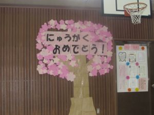 本日は津森小学校の入学式にご利用者様を代表されまして上田累子様、職員OB代表1名、職員2名で参加しました。
