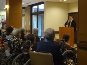 まずは西原村にあります慈雲寺の工藤誠修住職よりお勤めいただき、その後、御船町にあります永寿寺の甲斐哲治住職よりご法話を賜りました。