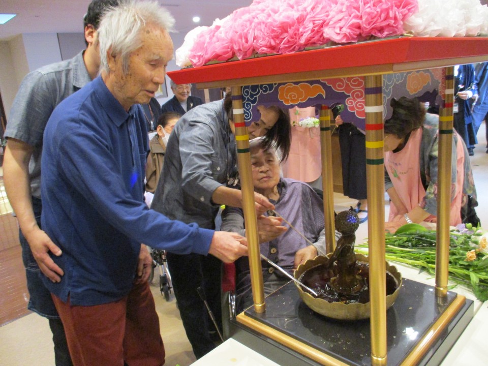 本日は、午後2時よりひろやす荘法話スペースにて「花まつり」を行いました。