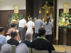 その後は参加されたご利用者様、職員共に焼香し、亡き人と過ごした時間を思い皆で祭壇に手を合わせました。