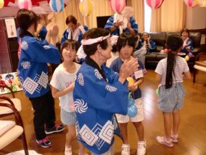 今月から、ひろやす荘では「寺子屋」という子ども達の自主学習の場を提供しており、今日はちょうどその寺子屋の日でしたので「せっかくの夏休みだから」という事で子ども達もお祭りに招待しました。
