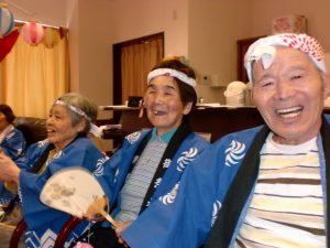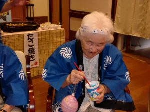 かき氷とたこ焼きのおやつもお腹いっぱい食べて、最後は『益城育ち』の盆踊りをみんなで踊ってフィナーレ。
