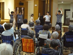 職員も参加して、音楽に合わせてみんなで体を動かしたりしました。