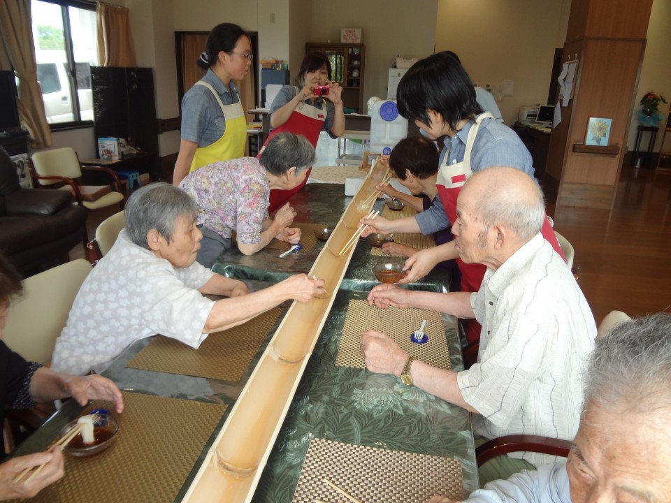 今年は雨が続いたりとはっきりしない天気の日が多いですが、夏ならではのそうめん流しで、季節を感じていただけたのではないかと思います。また来年もお楽しみに・・・♪