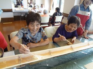 「なかなか難しかねぇ~」と言われながら、真剣な表情で箸を伸ばされ、上手くつかめた時には歓声が上がりました(^_^)