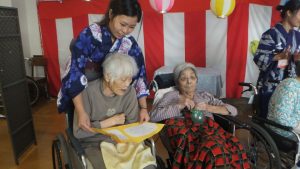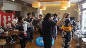 久々ということで苦戦しておられましたが、上手く取れたときには歓声が(^_^)職員による踊りの披露もあり、ご利用者様も、音楽に合わせて手拍子をして盛り上げてくださいました。