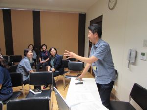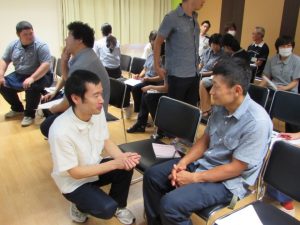 座学で、認知症の方に対する接し方や声の掛け方などを学んだあとに、実際に、マンツーマンでロールプレイングを行いました。