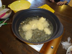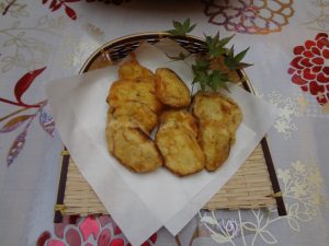 お次は芋天。皮を剥いて輪切りにしたら、衣を付けて油でカラッと♪