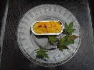 茹でたさつまいもをつぶして砂糖と牛乳、バターを加えてよく混ぜ、カップに入れて形を整えたら、表面につやだしの卵黄を塗りトースターで焼いて、まずはスイートポテトの完成です。