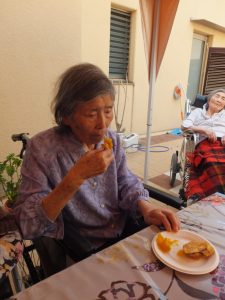 石焼芋も完成し、天気も良かったので、中庭で季節の訪れを感じながらおやつタイム!