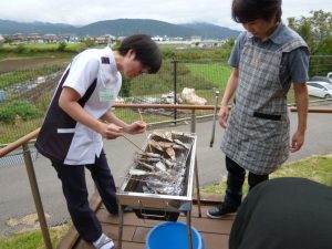 メインは、秋の味覚のバーベキューです!ベランダのウッドデッキにバーベキューコンロを用意し、さんまや唐芋を焼きました。次第にお部屋に良い匂いが漂います♪
