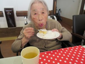 出来上がったものは、おやつとして皆で頂きました。あちこちのテーブルから「美味しい!」の声が飛び交い、お腹も満たされて楽しい午後のひとときを過ごすことができました♪