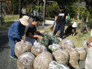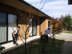 朝から昼過ぎまで、窓ふきや落ち葉拾いなどいろいろな清掃作業に取り組んでいただきました。