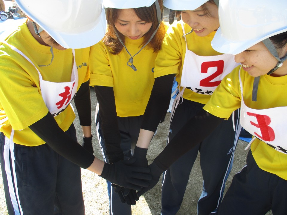 今回は施設を代表し、ひろやす荘女子チームの若さ溢れる4名が出場し、約1ヶ月半、益城西原消防署の方より指導して頂き、一生懸命練習を行ってきました。