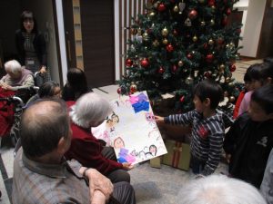 可愛らしいカレンダーを受け取ったご利用者様は、「ありがとう!」「大変だったねぇ」と笑顔で優しく声を掛けられていました。