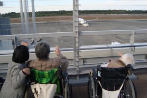 飛び立つ前の飛行機に手を振ると、パイロットの方が手を振り返してくれました(^^)/「このまま飛行機に乗ってどっかみんなでいこうかね~」と冗談を言ったりしながら、飛び立つ飛行機を眺めて皆様ご満悦の表情♪