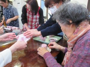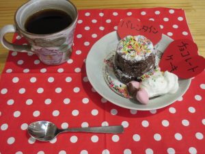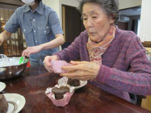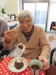 出来上がったチョコレートケーキで午後のおやつタイム!「美味しいね(^_^)v」「簡単に作れるようになったね~」等の声が上がり、会話が弾みました♪