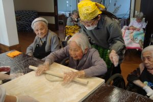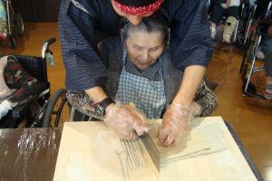 今日は、たけ・きりユニット合同でご利用者の方達と一緒に蕎麦を作りました!