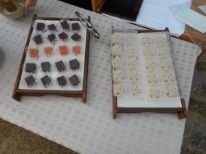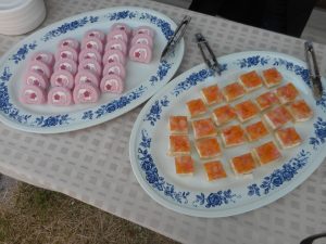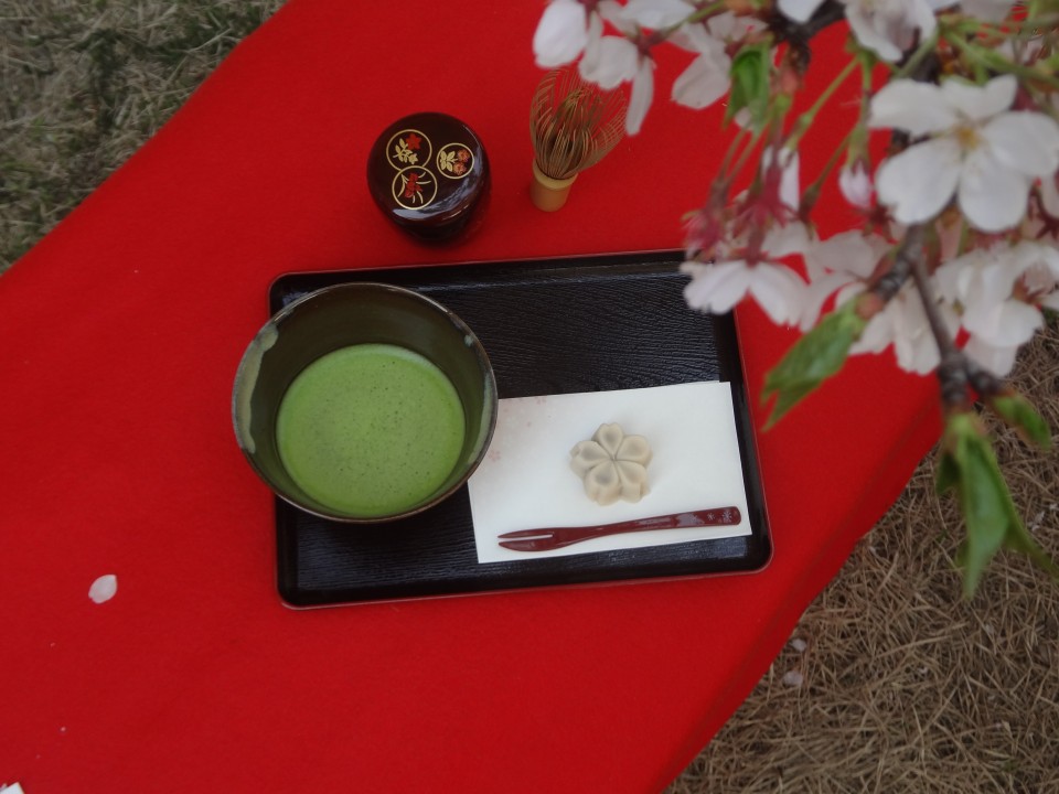 今回のお花見のイメージは春のお茶会♪お茶菓子には、桜を模した練り切りや手作りの羊羹、和菓子が苦手な方にはケーキをご用意しました(^_^)