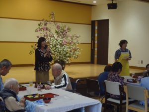 食事会に日本舞踊と、利用者様には一日を通して「花見会」を楽しんでいただきました。