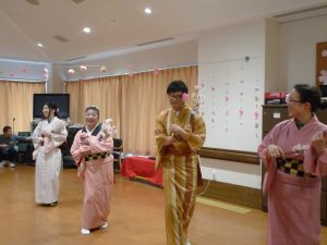 森川様のご厚意により職員にも着物を着付けていただき、一緒に「さくらさくら」を披露し、利用者様もとても喜んでおられました。