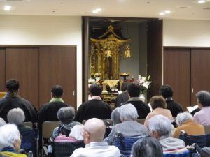 ひろやす荘でもビハーラ熊本、益北組の皆様のご協力のもと花まつりを行い、参加された利用者の皆様はご導師様方の読経やご法話に真剣に耳を傾けておられました。