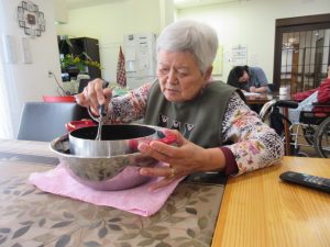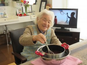 なべ底を水で冷やしながらとろみが出るまでさらに混ぜます。