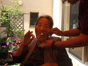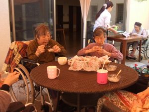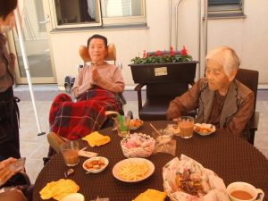 さくら・ふじユニット中庭にてお茶会を開催しました。