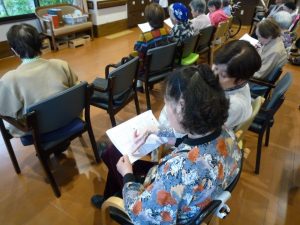 今回のテーマは「母の日」で、歌に合わせてハンドベルも利用者様に鳴らして頂き、「きれいな音ね」と言いながら参加されていました。
