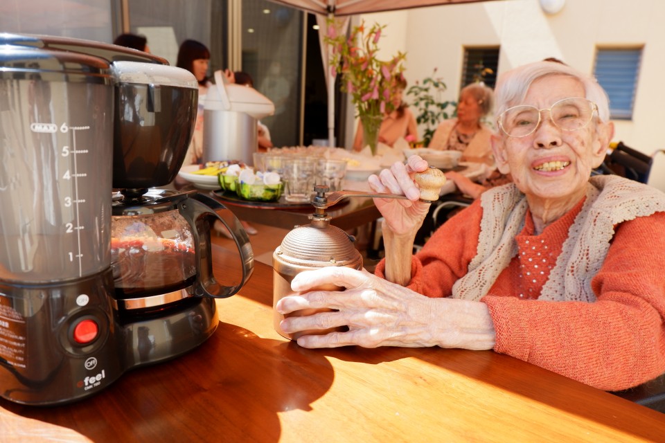 中庭でおやつの時間に「ドリップコーヒー」を愉しみました ♪