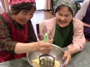 本日はあいにくの曇り空でしたが、2ヶ月ぶりに調理レクリエーションをしました。