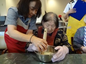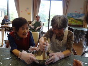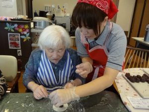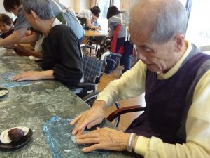 先日、お彼岸のお供え物である“おはぎ”をご利用者の皆さんと一緒に作りました。