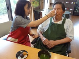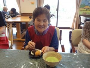 おいしいお抹茶とおはぎを食べる時間には、みなさんの嬉しそうな笑顔があふれます。