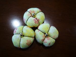 9月下旬から、どんな物を作るか利用者様と職員でアイデアを出し合い、試作品を作り、3つの候補からちりめん布を使った「つばき」を作ることにしました。