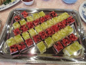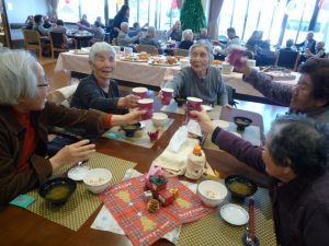 お好きな物を選んで召し上がって頂きました。利用者様はたくさんの料理に「こんなにたくさん食べられるかな?」と心配されていましたが、お皿の上のお料理はあっという間に皆さんのおなかの中に!